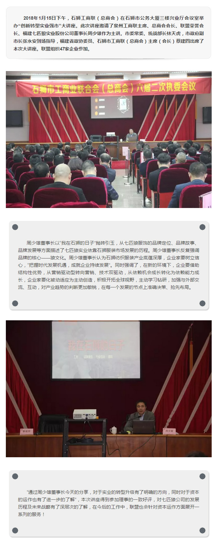 联盟组织企业参加“创新转型 实业强市”大讲座