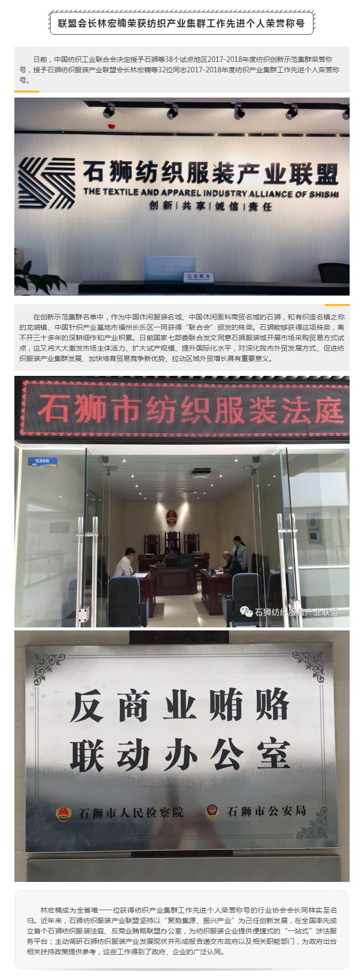 石狮荣获纺织创新示范集群荣誉称号