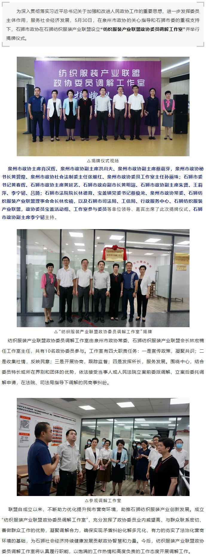 正式揭牌成立!纺织服装产业联盟政协委员调解工作室揭牌仪式成功举行