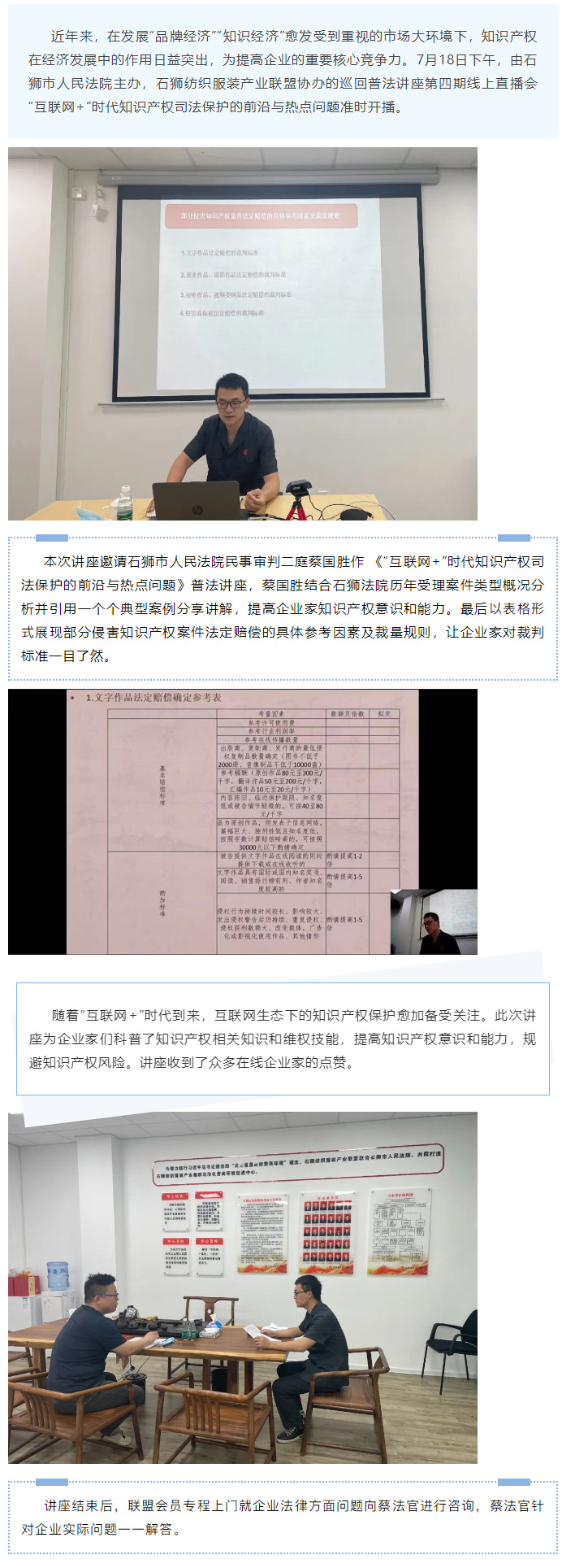 巡回普法讲座第四期——《“物联网+”时代知识产权司法保护的前沿与热点问题》线上直播讲座圆满举办