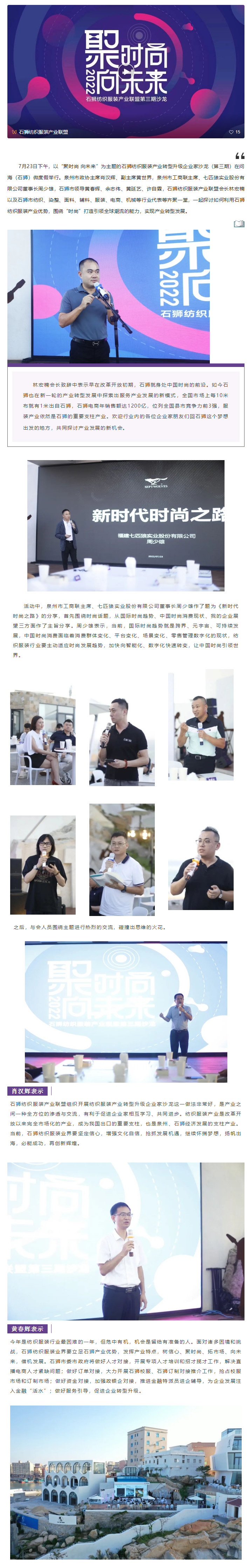 树信心 聚时尚 拓市场 向未来—— 石狮纺织服装产业转型升级企业家沙龙(第三期)举行