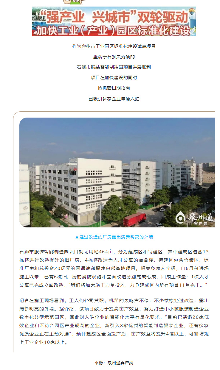 石狮市服装智能制造园改造提升“两手抓”:不够智能不入园,亩产效益论英雄