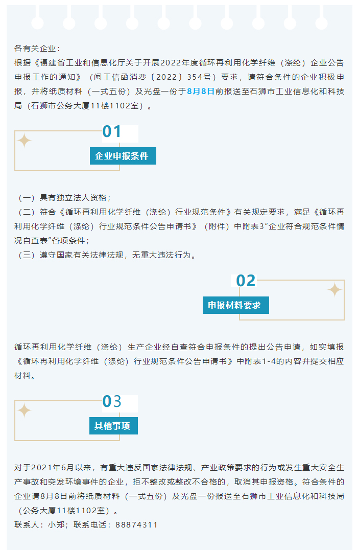 2022年度循环再利用化学纤维(涤纶)企业公告申报开始了